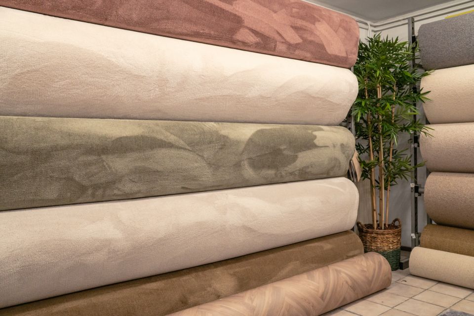 Achter de enorme gevel van KA-ME-TA liggen 600 rollen tapijt, 200 rollen vinyl en een flinke hoeveelheid trapbekleding. Rollen kunstgras staan klaar voor een plekje in de tuin of op het balkon.